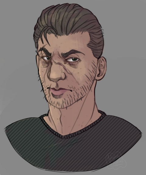 #background #black #character #doodle #fantasy #gift #green #headshot #human #humanoid #illustration #male #man #men #oc #original #painting #portrait #scar #scars #simple #original_character