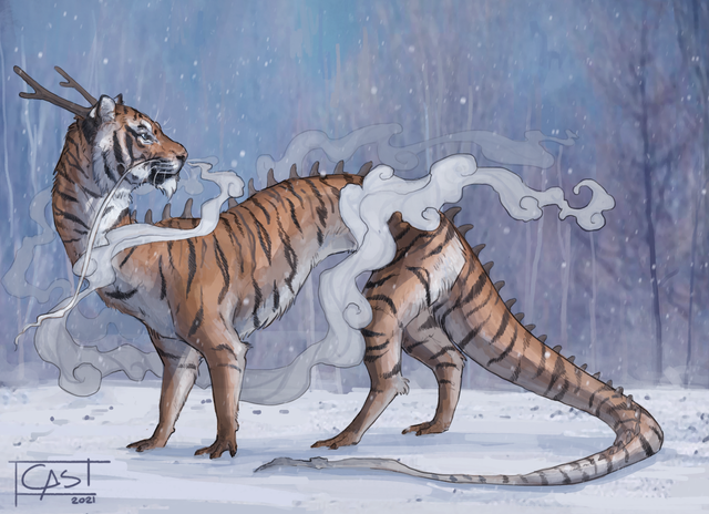 #animal #antlers #big #black #cat #character #demon #digital #dragon #fantasy #feline #feral #flowers #fluffy #fullbody #glow #glowing #hybrid #male #monster #oc #paws #red #scales #snow #tiger #white #winter #sabertooth #original_character