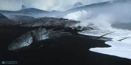 I see how the ground is being torn up and destroyed, with this giant, kind of mystifying creature coming out of it, and it makes me think. This is so profound, I love it. Makes me think about how for something truly new and beautiful to be made, something else that may or may not have been just as beautiful needed to be destroyed, or at least changed. Stunning, I love it.