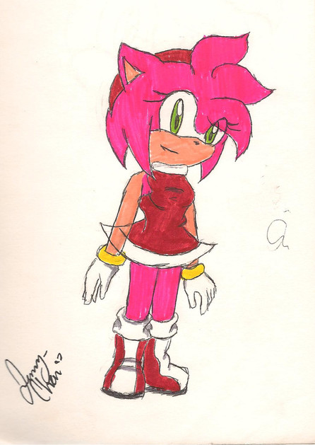 Sonic's Love Interest (One-Sided on Amy's Side) as well as one of the Main Characters in the Sonic the Hedgehog series.Amy Rose made her Debut in Sonic CD as a Non-Playable Damsel in Distress, Being Captured by Metal Sonic and saved by Sonic.