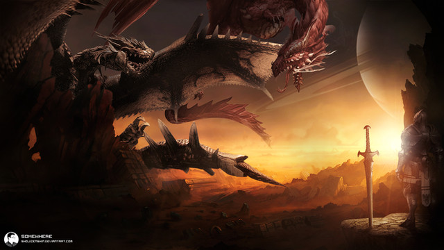 super toll geworden. Atmosphäre, Hintergrund und die Perpektive sind überwältigend!!! Die farbwahl is toll und ich liebe diese kleinen Details auf dem kaiju wie die schuppen und stacheln!! fatatscih. Super arbeit