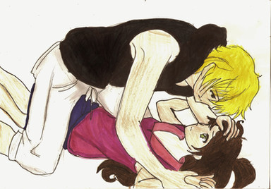 To tell the truth, I have no clue what is going on at the end of the picture, you know, past what you can see. Maybe they are doing -cough cough- or he's doinig something to her that obviously is making her feel so good and make them both blush. I dont know. Or maybe they are just about to kiss. I really can't tell, since there is officially no bottom. just use your imagination, ok? Cuz for some reason, the only thing I can picture is something dirty as hell. I have a bad mind...