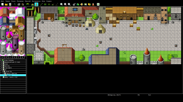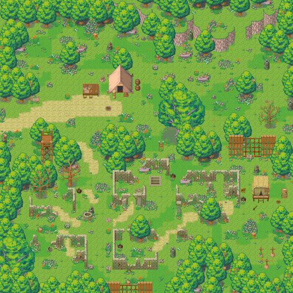 im thinking there could be some ruins in the deep depths of the forest ... but i still have a ways to go before i go download more & more tilesets to use.i reaaaaaaallllllly should not try to overthink this. i haven't given all the default tile sets a whirl just yet , so i should see what they all look like before going off to add even more .