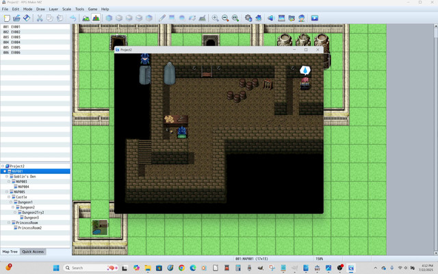 this is just a suuuuuuuuuuuper rough draft for a beach area . i'm not sure if there should be a beach area for what im trying to make... but seeing what all of the tile sets have to offer isn't a bad thing.map making is pretty fun , even if i have no clue what i'm gonna end up using it for. but , i still think the coding aspect of RPG maker is the rough part of making a game.