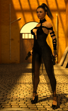 #assassin #3d #digitalart #leather #render #gun #originalcharacter #sexygirl #blackhairedgirl #highheels #dazstudioiray