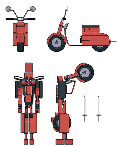 Anyway, here's TFA Razorbeast? He turns into a motorcycle as his pre-Earth robot mode in IDW's BW comics indicated. The way the front of the vehicle forms the chest is also inspired by that design, but the rest was all me, particularly the kinda-sorta motorcycle helmet head design thing.
