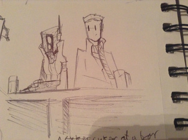 I guess part of it was all these little ideas of what I could do with Raoul. Like, add these funny little quirks and see how they click together. Maybe give him an outrageous pompadour, polkadot boxers, or maybe playing piano. Or pool. Just because. Maybe see if they paint a better more endearing picture of the guy. Though a few interesting facts and character quirks don't make a complete character. But I've got room to build. Of course he doesn't have and isn't accompanied by a pair of tits so this is primarily just for my own amusement. Raoul's fun and challenging to draw and I have a lot of small ideas orbiting around him.