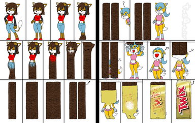 Just posting some tf art while I mull over the second chapter of antinomy, and once again, I make just another rubbish pun.So, this tf of myself becoming 's big Lynxuki (Lynx+Seluki) OC Riley, via 2 bracelets this time, and alot of growing involved, as she is massive.