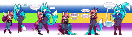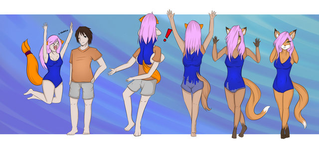 Thanks, and actually the new tail comes from my character, Takara's character only has her tails become the side flaps the 5th tail of hers just gets squished between us and disappears