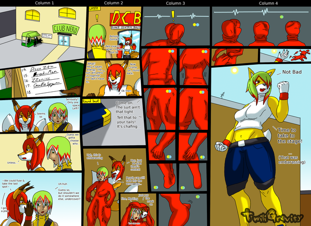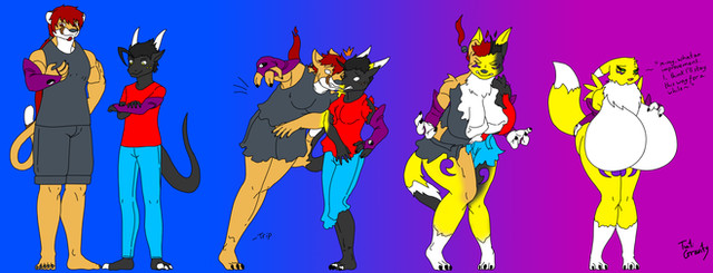 It's a very good way to portray it, also love how the tails on the female character become the side flaps of the costume and the new tail.