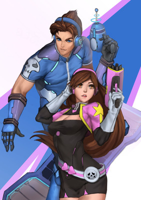 I like how the girl came out (per usual) and she does seem to have more details, which is more eye-catching for me. The guy's left arm seems slightly weird though, like he bends it behind his back. I believe it's a matter of perspective, but placing the arm parallel to his body would've been a better choice in my opinion... more natural, for the lack of a better term.