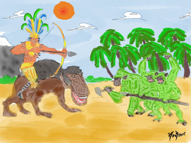 Convincing the entire tribe to assist him wasn't easy but luckily for Ryan their leader, the silverback, was willing to bealive his word knowing that while both lion and leopard were predators there was no love lost between them. Ryan had to admit that he was starting to like this gorilla, few animals he meet were this rational and willing to listen to reason, though while directing the gorillas to build his trap Ryan had an upleasent suprise when he came across human bones within the gorillas territory, acording to the silverback these were hunters that attacked his tribe years ago forcing him to kill them as it was his duty to protect his tribe. Nervously gulping Ryan agreed that he did a good job at it though Ryan soon found out that the humans deserted camp held some usefull stuff. Their guns were broken apart by the gorillas, but he found other well preserved weponary. Once they were finished Ryan sent one of his vultures to give Raja a message, the old bastard would soon get his just deserts.