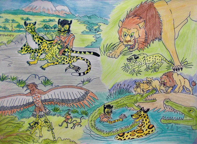 " Let me guess?" he asked timidly "There was no shaman here, and you made a fool out of Raja?" Ryan nodded " Oh it was more then that, I`m sure he`ll tell you in greater detail about what happened" "Oh no" sighed the hyena clucthing his face already knowing that Raja`s gonna be super mad and take it out on him. Turning back to the leopard Ryan lead her to the cave to show her their new home on the other side, knowing she would like it, and with nothing other to do Razoul followed them, hoping he could avoid Raja until he calmed down. As they walked Ryan told her about how managed to hold his own in a fight with Raja alone, which promted Cameron to say that she was proud of him, then something dawned on Ryan "Say Cammy how did you escape?".......