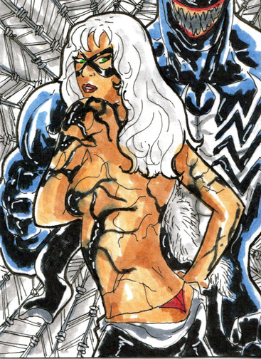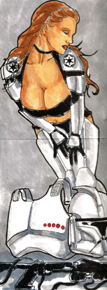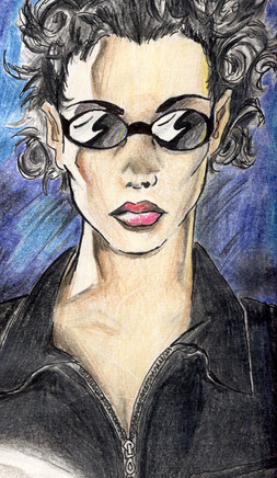 mixed media on 2 1/2 x 3 1/2 paperTrinity from The Matrix