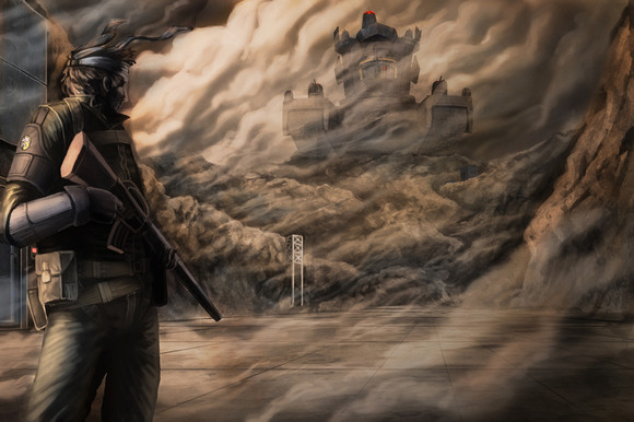Another fanart, for InFamous 2 this time.The main character, Cole Macgrath in front of two choppers he shot down.