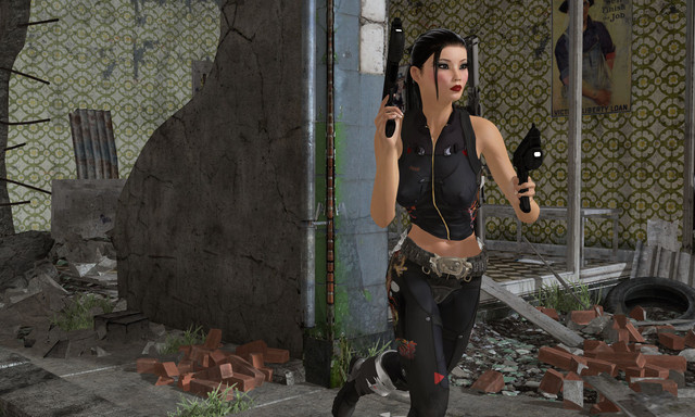 This just came out beautifully. I love the lighting, which I claim no credit for.The Gunwitch searches one of those old buildings you find around Paragon, usually filled with crazed gang members.