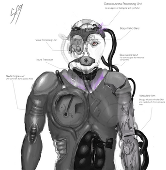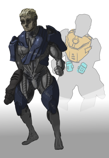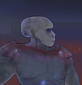 A Modrikrev Industries Model synthetic human, specialized for combat. This specific android has been augmented over time and deviates significantly from the standard.
