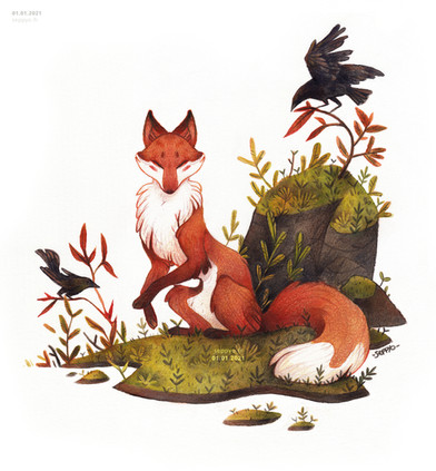 #fox #tail #wol #louloup #birds #foxtail #robin #thassy #wolfcharacter #tassimagalhaes #foxy_the_fox #louloupillustration