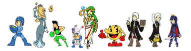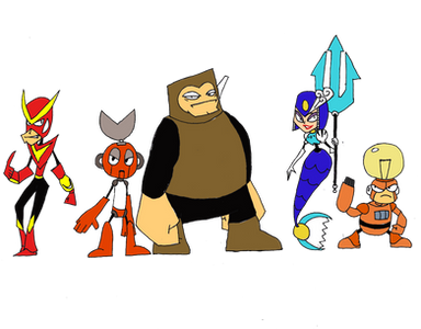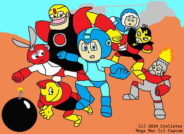 forgot today was Draw MegaMan Day.here's Megaman, thefirst set of Robot Masters, and the Yellow Devil.