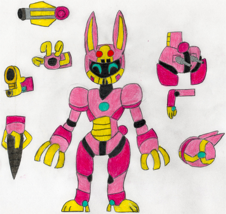 Here's The Design of Chrono, The Bunny-Bot, In Case you Want To Draw Her. :3Her Paw Size is 14 BTW.
