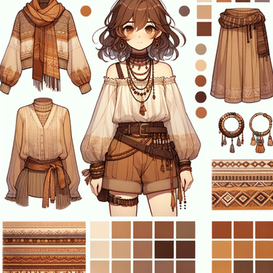 #ai #anime #animeinspired #characterdesign #fashionillustration #wintersolstice #bohemianstyle #softcolorpalette #rusticelegance #moderntraditionalfusion #accessorydetails #casualboots #feathermotifs