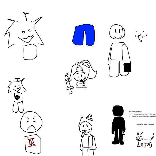 Hi and uhh welcome to my idk page. I usually just draw stuff liek dis or something (?). Feel free to come and have a cookie with milkRelated content