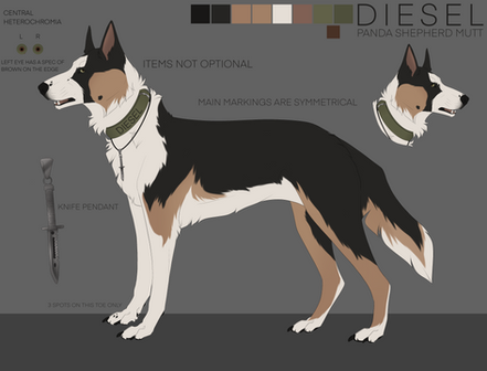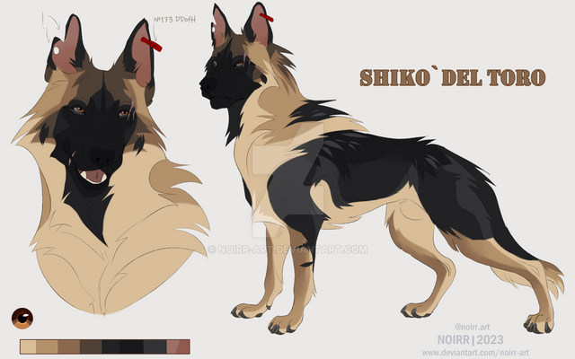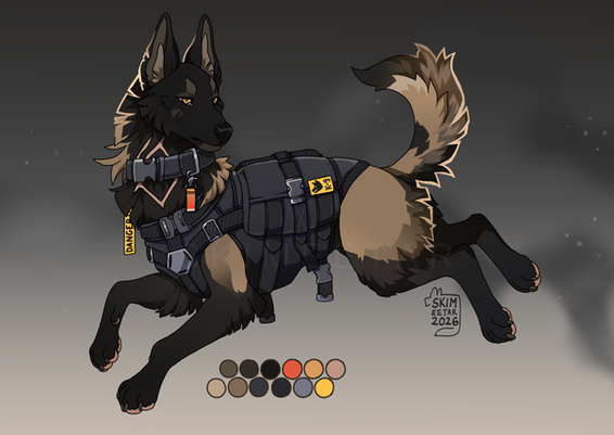#characterdesign #originalcharacter #referencesheet #digitalart #dog #canine #belgianmalinois #dark #grey #katana #malinois #ref #samurai