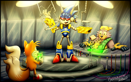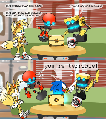 Oh noes, Sonic is messing with cutting machines again...and Tails isn't very happy about it!