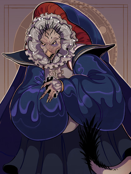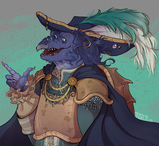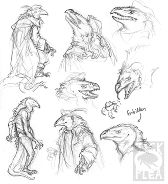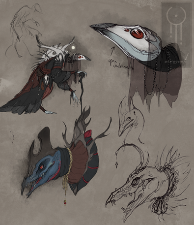 hulloo thanks for the comment! unfortunately I can't take credit for the creature design; she is a skeksis, which is a pre-invented race featured in jim hensons old classic 'The Dark Crystal' as for the blue gal herself I based her look here off of one of the illustrations done by cory godbey under the same series