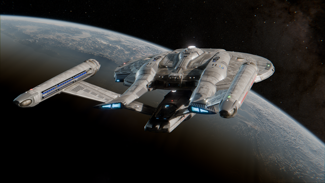 Credits to Cryptic Studios and Star Trek Online for the Sovereign Class Model.The newly commissioned U.S.S. Sovereign proceeds to Alpha Centauri for her next round of shakedowns. Initially designed for exploration, Wolf 359 caused the Starfleet Corps of Engineers to pivot the design towards a more defensive vessel.