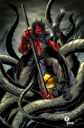 This is a cool drawing. Nice shading, makes it look kind of cartoonish, which is a good thing. Does this have something to do with the hellboy comics? I've never read them.