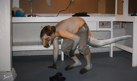 Lucas closed his eyes and kept sniffing the air. His nose twitched as he did; the shape changing ever so slightly as his ears began to slowly shift as well. The more he sniffed, the more his nose changed; a short set of whiskers now adorned his face as his ears inched slowly up his head. His light-colored hair began to turn into a mix of gray and white as an itching sensation washed over his arms and legs. Lucas absentmindedly itched at his arm when he felt something soft. His eyes opened immediately. He shaves his arms, he remembered doing that in the morning, how could—