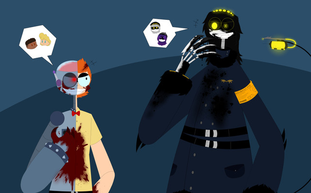IG my attempt at coming back post cuz it's one of my better pieces I have access to rn and is also on the recently made sideThese are my ocs SD-H(aka Hana) & Gremlin meeting for the first time.