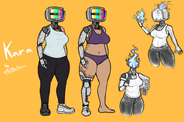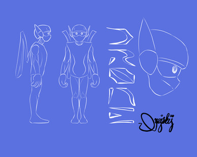 This is an original character by yours truly. It's a robot with black and white morals. He can shoot fire from his palms and fly for short periods of time. He can also boost out of its power source located on its back, but if it does it to much it will run out of power. It has an intelligent personality and is the only one of its kind, and although many copies have been made, none of them could beat the original(The name is yet to be decided)