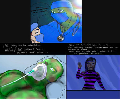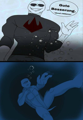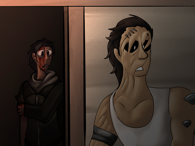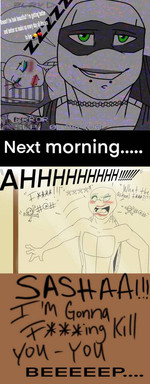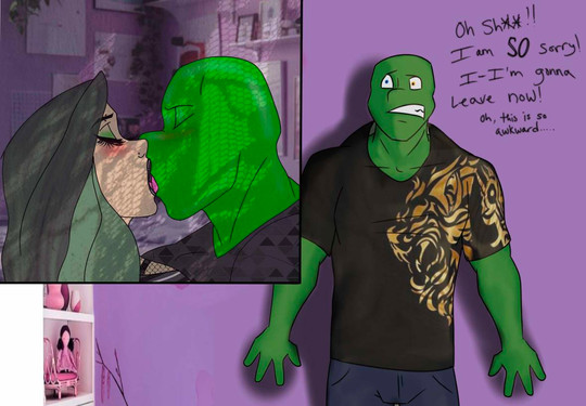 the top image was drawn by and it's her OC Dina.bottom picture was drawn by me and it's a reaction picture to the top image featuring my OC Seth
