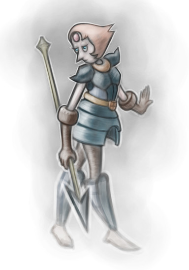 #armor #battle #cartoon #crystal #design #digital #drawing #fanart #fiction #gems #holding #network #pearl #ribbon #science #spear #standing #steven #su #universe #art