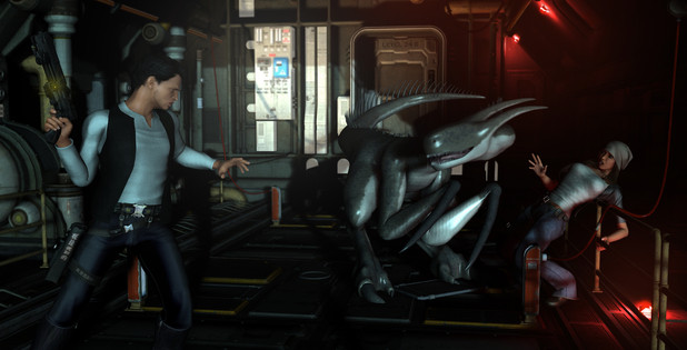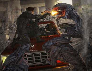 "Incoming!"Part 3 of my mini series. The thing attacks. It's fast and strong, but it did not count on Kalee's bionics enhanced reflexes and marine training. Say hello to five high velocity explosive rounds...