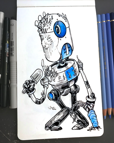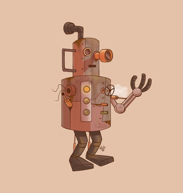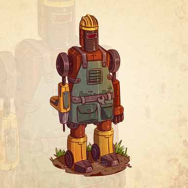 Its all the little details that really give this robot personality. its feet and hands are rustier and more beat-up then the rest of its body, the whole things been repaired with duct tape and non-standard parts like the shoulder, and all the bits of dirt and grime everywhere. It really looks like a robot that's been working in the garden for years. The only thing I'm wondering is if it has a master of any kind, or if it did those repairs itself.