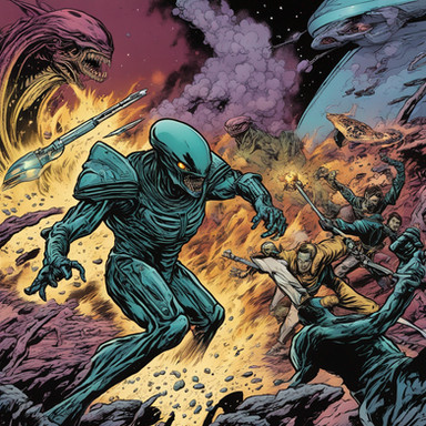 Someone gave me a 3DS demo code several months back, and I said I would draw this for him.Characters from the anime Legend of Galactic Heroes trying to fend off some xenomorphs from Alien.