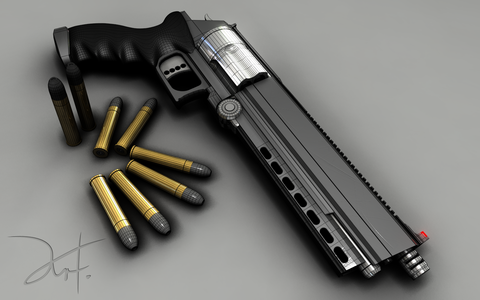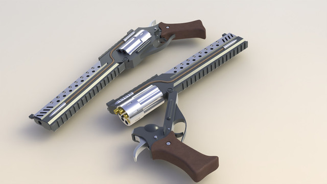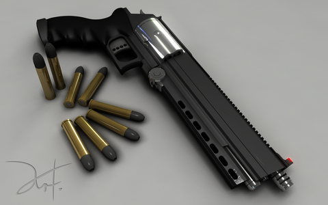 Nice design since it fixes the normal problem with only six shots per load on a regular revolver and has all the extras you could ever want on a gun. Not to mention this thing just look BOSS.