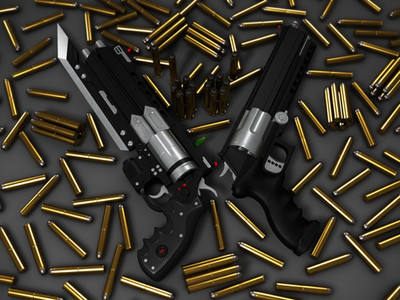 Just applied some of my materials to the higpoly model of the "Brotherguard" Revolver.I think it's worth showing