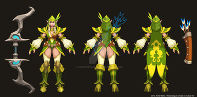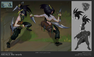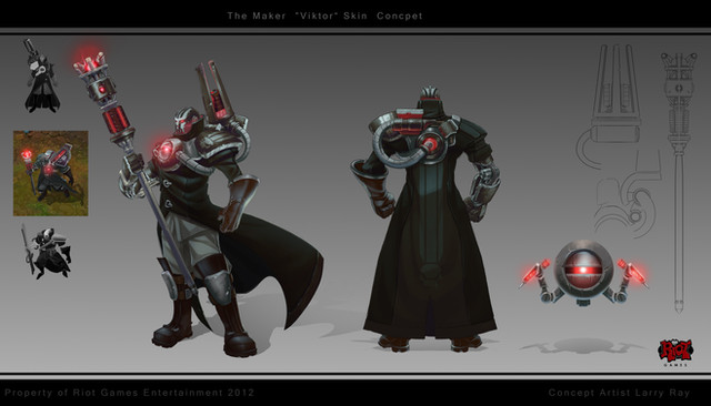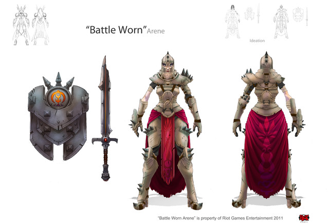 Ah the Redeemed Riven Skin, yes it was original going to be red in color for the leather accents, but was changed last minute to teal.Property of Riot Games Entertainment, 2011