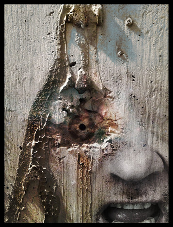 i think what you did, was some form of photo manipulation, you took a face in one layer, masked it with another layer of a picture of wood with a hole in it, then another layer, where the picture is just of birch wood..