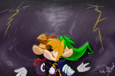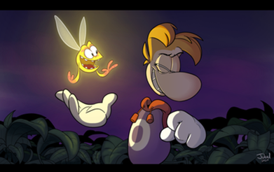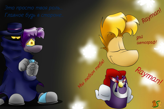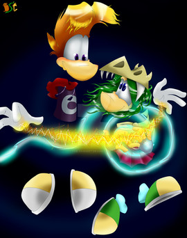 Blind and Rayman. The little son rejoices to the magic force.Blind -