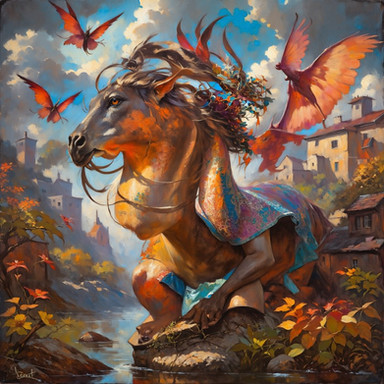 Finally, my last two nitpicky suggestions would be to paint the horse's eye- it can really help to engage the viewer with picture, and perhaps put a vignette on the borders, as a way of framing the picture? That is just personal taste however, so feel free to ignore it, haha.