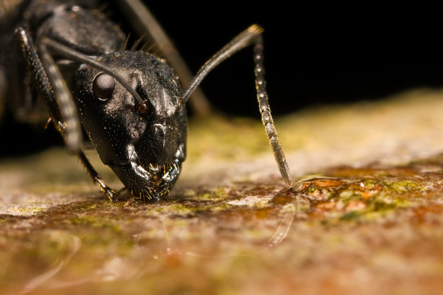 The same ant & honey drop as [link]The closer view is due the extra 3 ext. tubes (136mm) of total extended length.