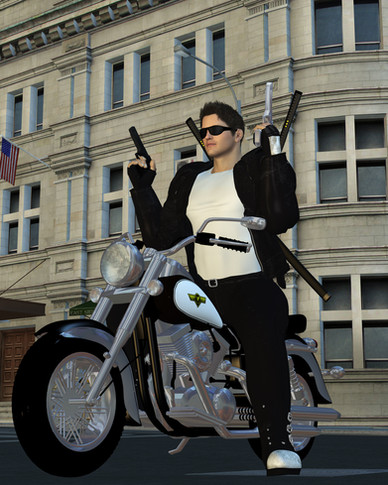 …It's weapons consist, primarily, of a Particle Beam Cannon (located in the nose), a "pop-out" Machine Gun (located near the nose, on the bike's right-hand side), and a "concealed" Rocket Launcher (located near the nose, on the bike's left-hand side)…
