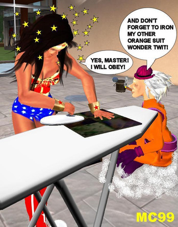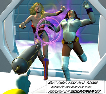 Anna Gram zaps Supergirl with a kryptonite ray beem from the Riddler's staff. Clearly, Wonder Woman is not herself.Part 8: