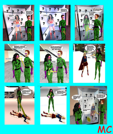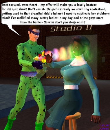 I was asking to see batgirl and supergirl also wearing the same outfit as Anna Gram. All three together under the riddler's control