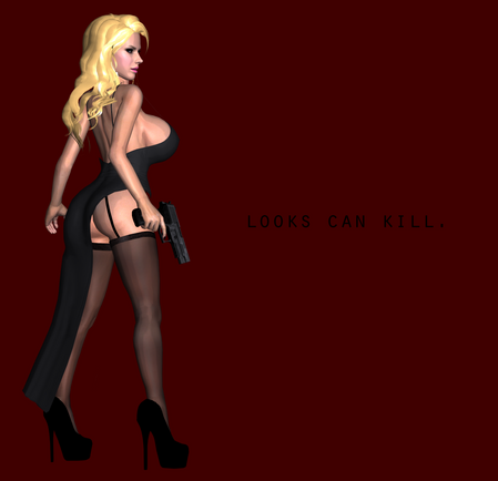 Well, I can trust on this gun on her hand only if she is a heroine. (Pamela Anderson?)